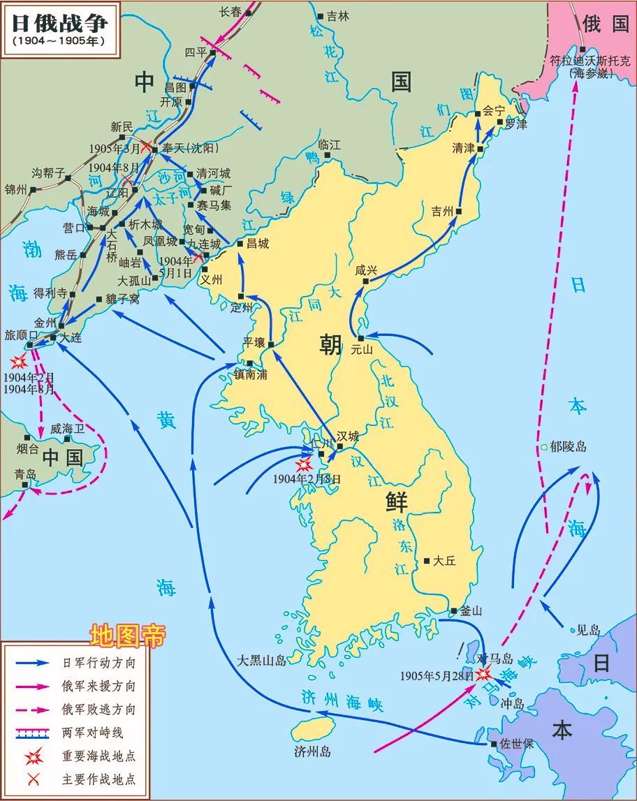 1905年,日俄战争爆发。在对马海战中,日本亡117人,伤583人;俄国亡4380人,伤5917人,被俘6000人。