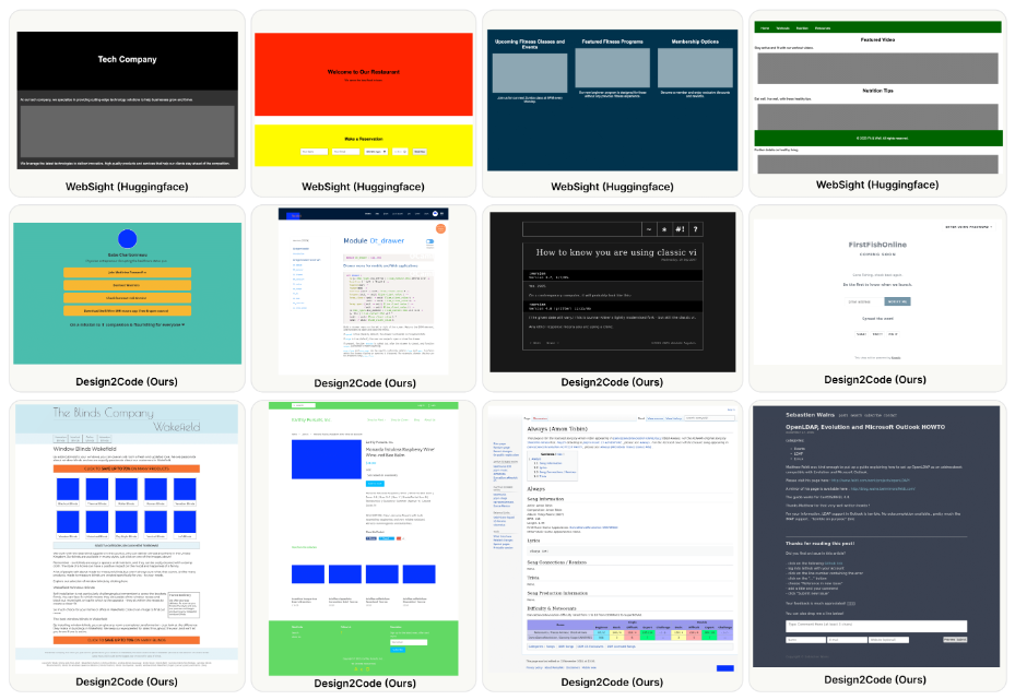 研究人员开发了一套多模态提示方法,并展示了它们在 GPT-4V 和 Gemini Vision Pro 上的有效性。他们还对开源的 Design2Code-18B 模型进行了微调,成功达到了 Gemini Pro Vision 的性能水平。