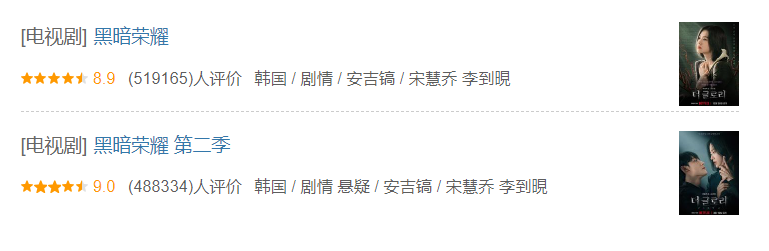 总之《黑暗荣耀》的成绩,就目前来讲,暂时还没有同题材的电视剧能够超越。