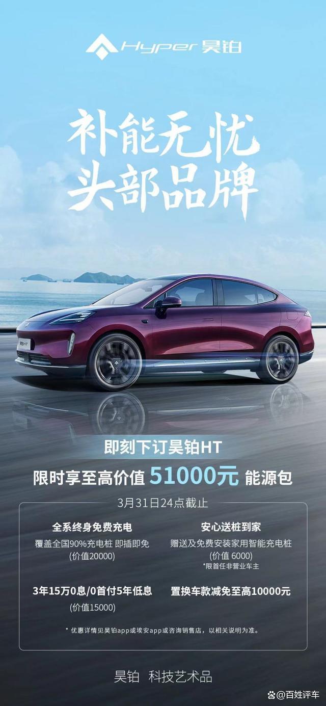 昊铂官方推出3月31日前限享价值至高5.1万“能源包”权益享受,针对三月购车的昊铂HT车主,提供终身免费充电、家用智能充电桩免费赠送及安装、0息低息金融补贴、置换减免政策等重磅福利。昊铂HT“能源包”覆盖消费权益、用车体验等维度,成为用户选择昊铂HT的理由之一。