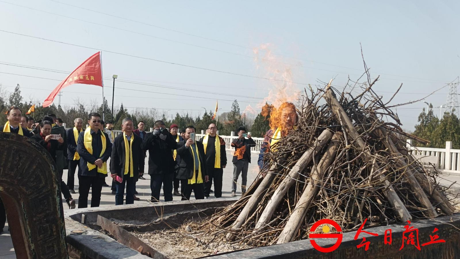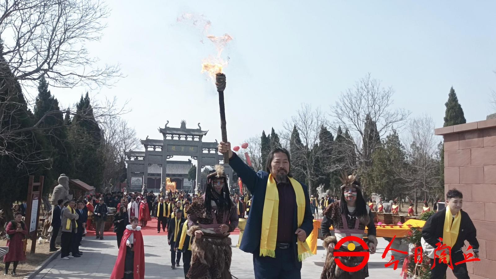 乐舞止歇,商丘古城文旅集团副总经理马发营点燃火把,添补新火,寓意中华文明薪火相传,燧皇功德代代传颂,中华文化繁荣兴盛。