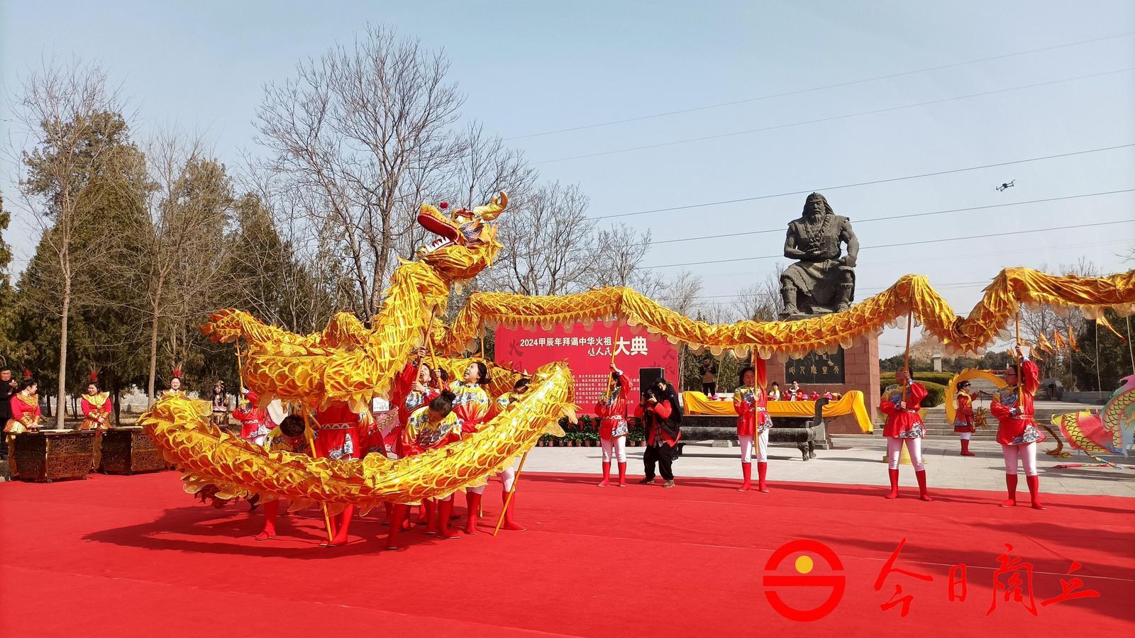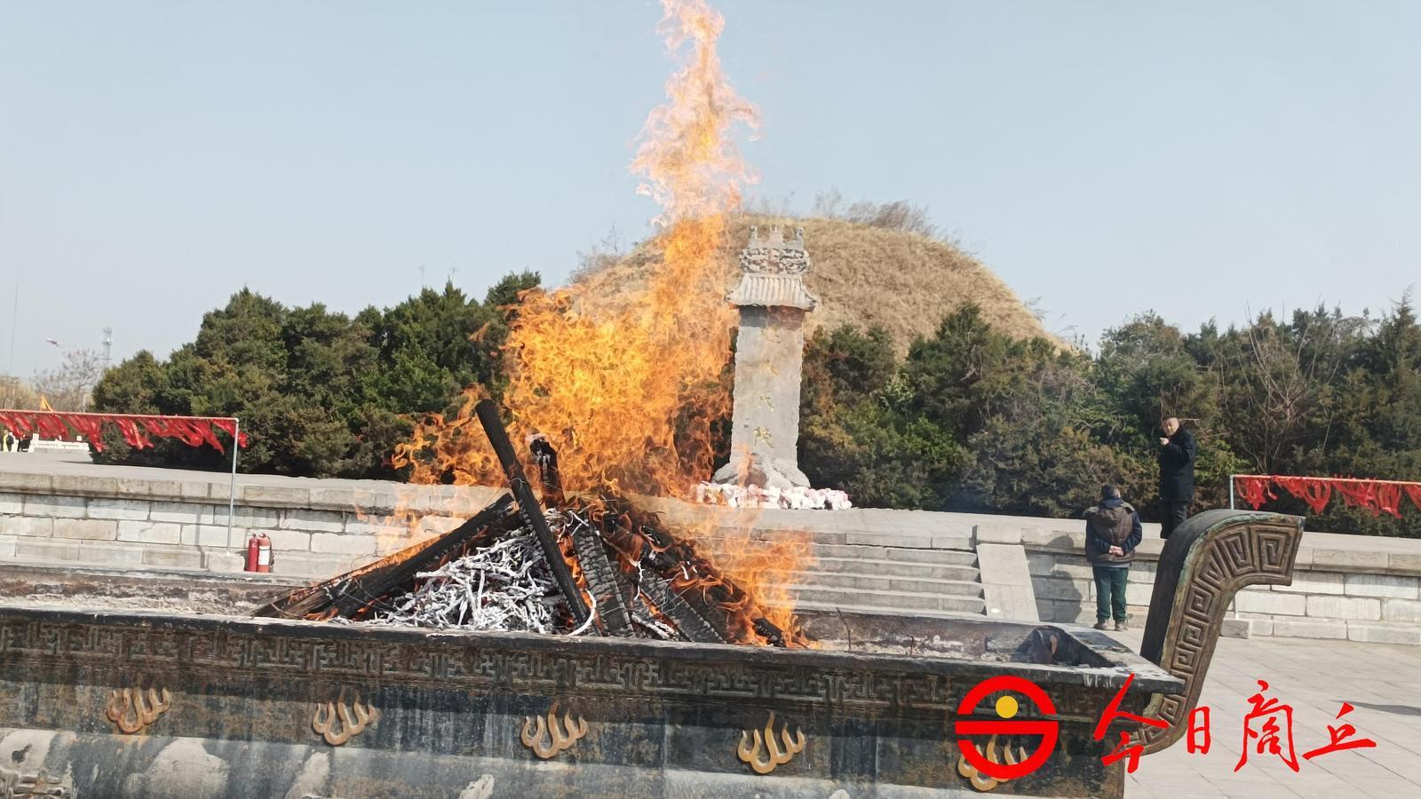 2024年3月11日,甲辰龙年二月初二,中华火源·燧皇故里——商丘燧皇陵庄严肃穆、古柏参天、鼓声雄浑、锣磬悠扬、金龙飞舞、雄狮腾跃。社会各界人士齐聚,怀虔敬之心、传承之念,以传统之礼、雅乐之仪,致祭于中华火祖燧人氏,2024甲辰年拜谒中华火祖燧人氏大典隆重举行。
