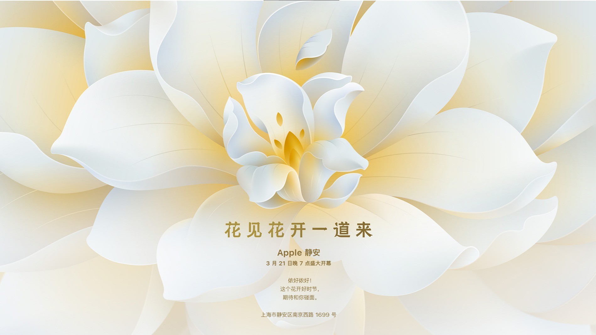 新店位于上海市静安区南京西路1699号,地理位置优越,正对静安寺,无疑将成为上海的新地标。门店的设计灵感来源于上海市花白玉兰,围挡上的欢迎语“花见花开一道来”体现了苹果对本地文化的尊重和融合。