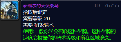 对于魔兽世界怀旧服玩家来说获得泰瑞尔的天使战马的机会还有,魔兽世界大地的裂变怀旧服Beta测试已于前几日开启小范围测试,有国外玩家通过客户端挖掘在里面发现存在泰瑞尔的天使战马的物品信息,玩家很有机会再次入手这只帅气的天使战马,在它面前什么无敌飞机头都得靠边站了。