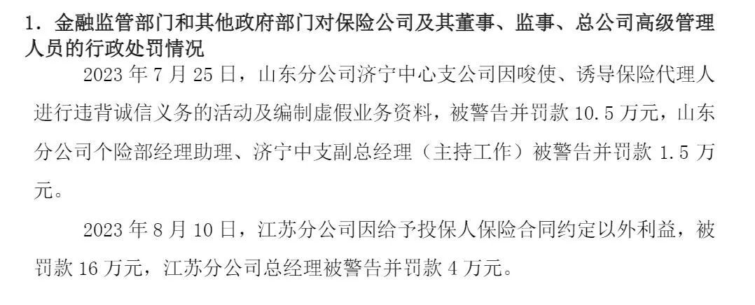 公告信息显示,2023年华泰人寿领取了多张罚单,处罚原因包括:唆使、诱导保险代理人进行违背诚信义务的活动及编制虚假业务资料,给予投保人保险合同约定以外利益,存在未严格审核代理人学历信息导致执业登记信息不真实的行为等。