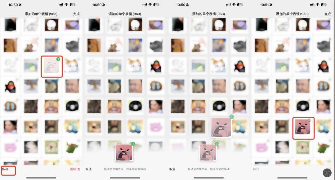 在新的微信版本中,整理微信表情包变得更加快捷、方便。用户可以选择一个或多个表情包,通过拖动表情至任意表情之间实现快速处理表情包顺序。