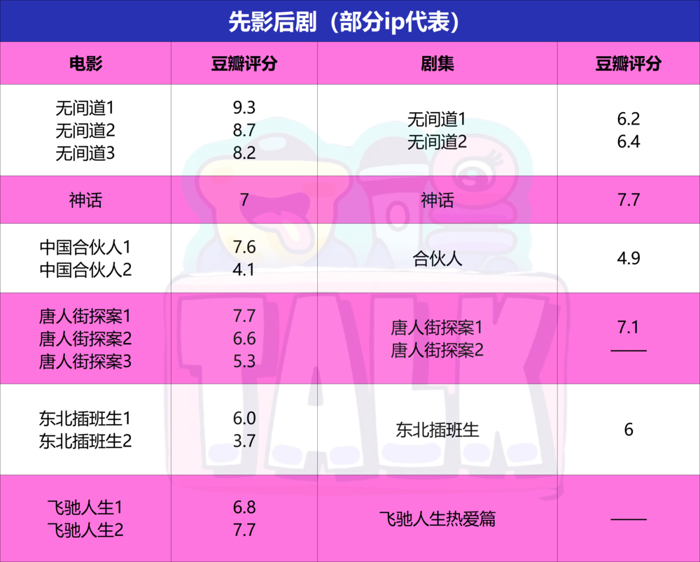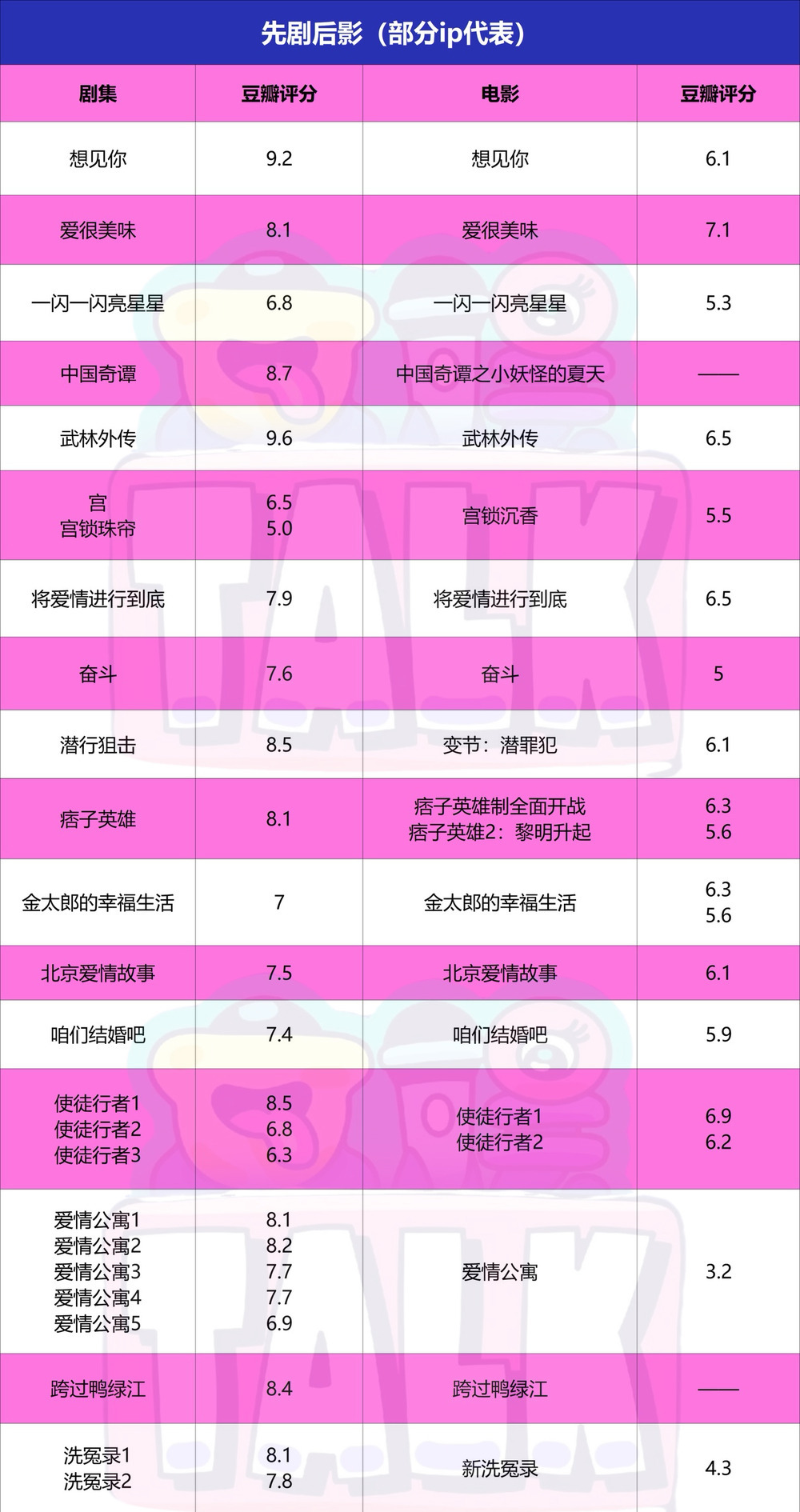 且不说漫威、迪士尼的海外成熟“故事宇宙”做范本,kk合计国内也不是没有“长寿剧”当榜样,TVB的系列剧就一大堆,再不济看看《老娘舅》和《乡村爱情故事》呢?先把IP本身养肥了,再想着薅羊毛的事能行不?