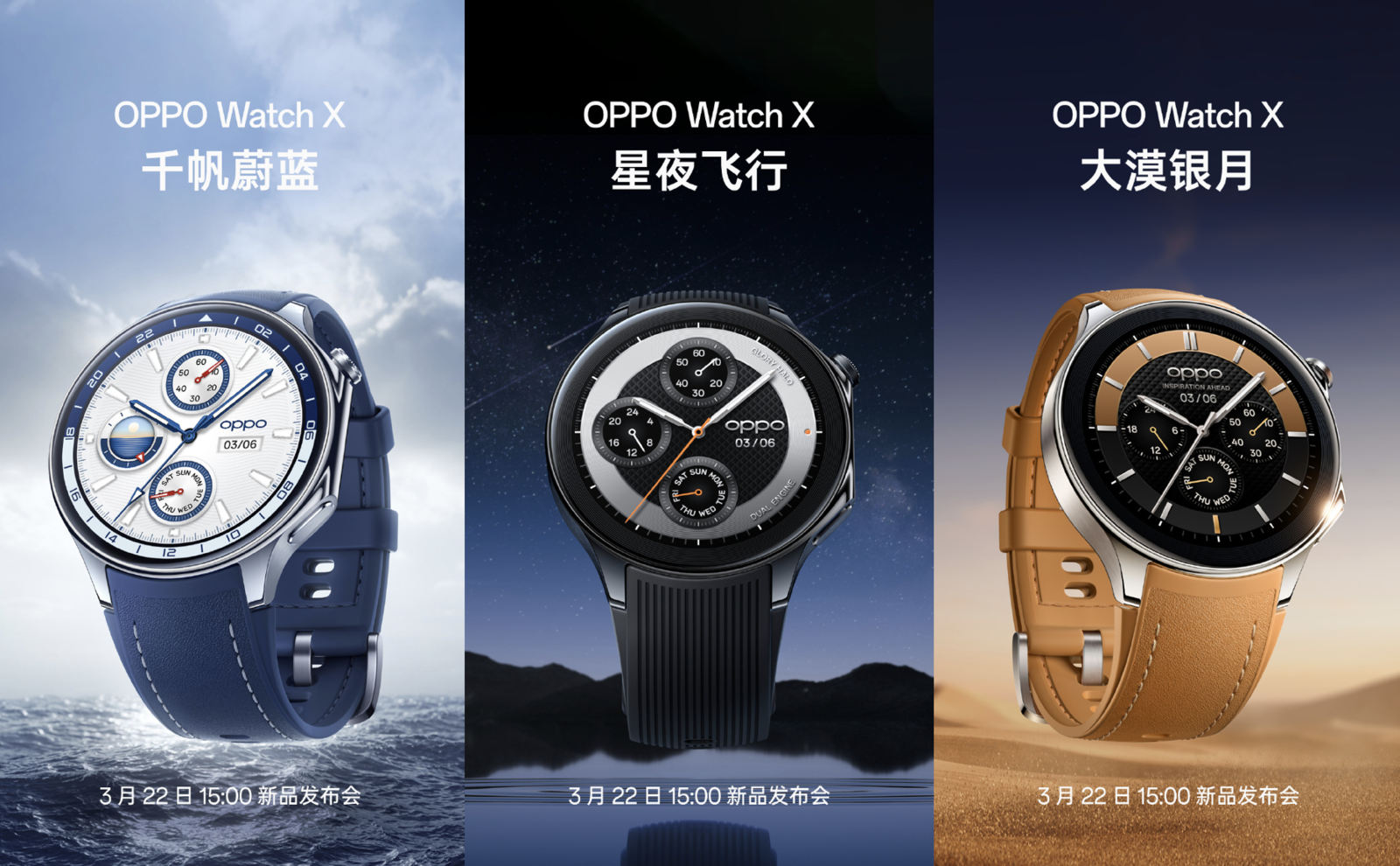 3 月 13 日,OPPO 官方宣布智能手表新品 Watch X 将于 3 月 22 日 15:00 正式发布。与 Watch 4 系列不同的是,OPPO Watch X 变为圆形表盘,官方表示探索全智能旗舰的无限可能。