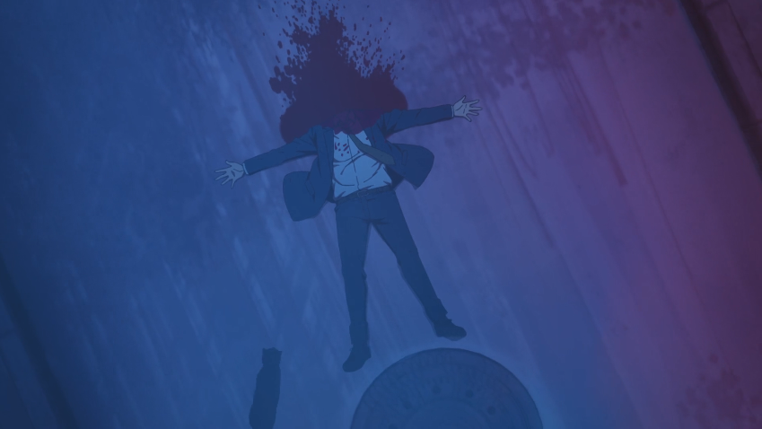 最终,一人从高处跃下,让其身首异处,血流一地。