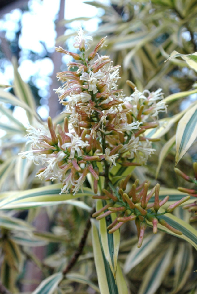 金边百合竹是很少开花的,养成室内盆栽之后缺乏光照,开花就特别少。如果有充足的阳光,再加上温润的环境,它有时候会在冬末和春夏季节开花,它的花朵是一簇簇的小白花,闻起来是特别芬芳的。
