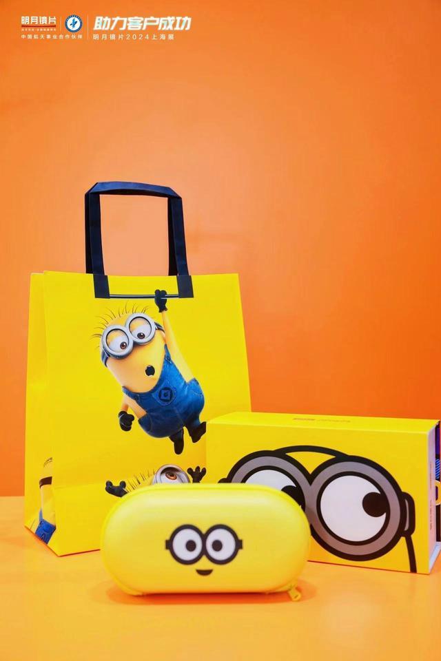 2024中国(上海)眼镜业展览会日期在沪举行。展会现场,国民镜片品牌明月镜片与环球影业小黄人大眼萌官宣携手合作,首度发布轻松控Pro小黄人定制款。