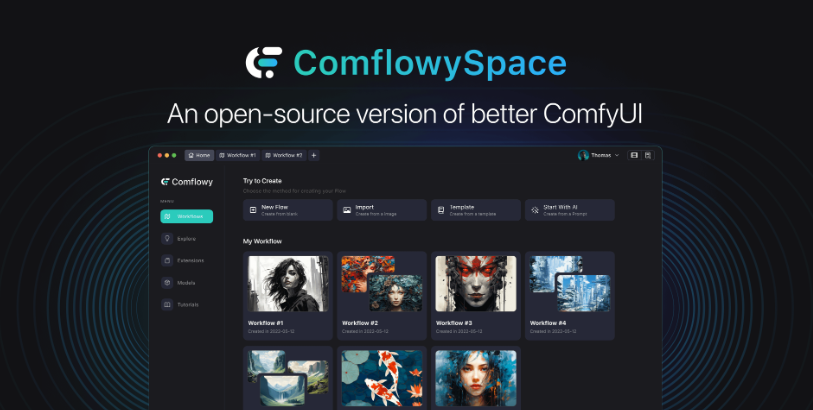 除了简单的安装过程,Comflowyspace 还提供了更简单的设置功能。用户可以下载并使用各种模板构建工作流,轻松定制符合自己需求的界面,提高工作效率。而且,通过工作流管理功能,用户可以查看所有历史工作流,无需手动导出和保存工作流,同时允许同时打开和运行多个工作流,让用户更加高效地管理自己的工作流程。