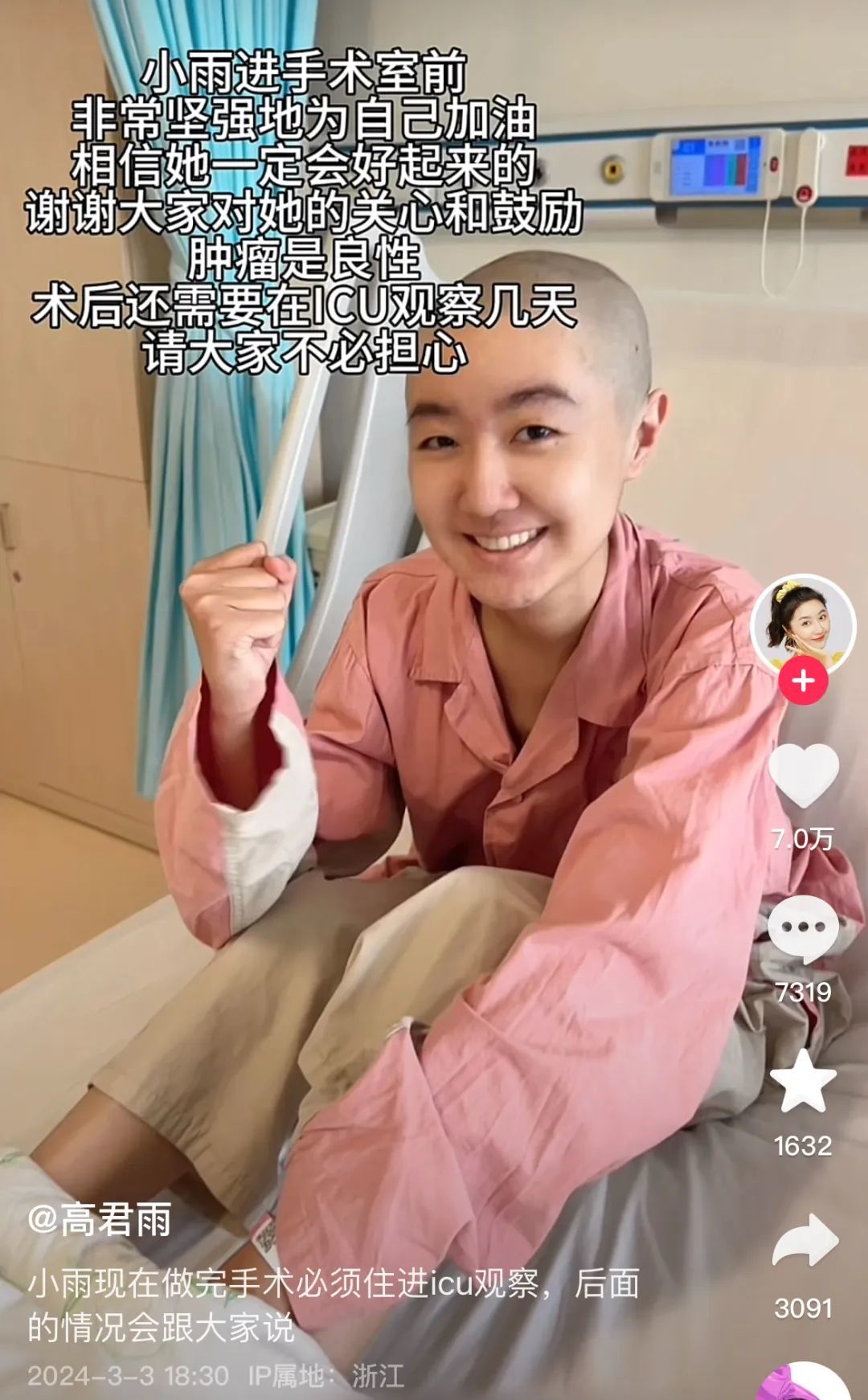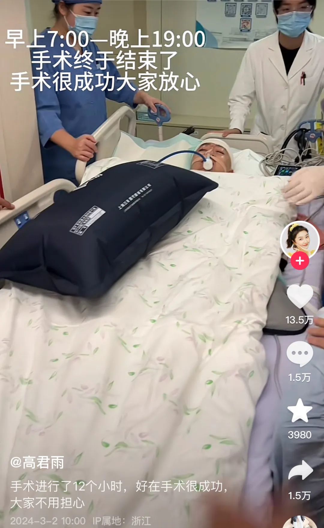 3月2日,高君雨账号又发布了手术结束的视频,并配文: