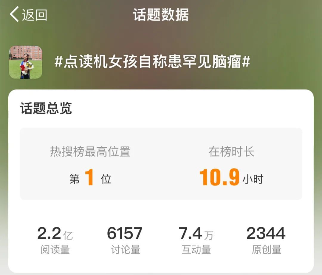 事件开始于2月29日,一条“点读机女孩自称患罕见脑瘤”的消息冲上热搜第一。