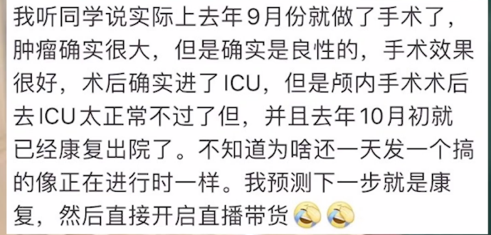 此时的网友才回过味儿来:这压根儿就是利用病情在炒作。