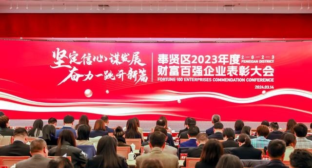 3月14日下午,奉贤区2023年度财富百强企业表彰大会在区会议中心举行。区委书记袁泉,区委副书记、区长王益群,区人大常委会主任张培荣,区政协主席陈勇章,区委常委、副区长王建东,副区长厉蕾出席大会并为获奖企业颁奖。