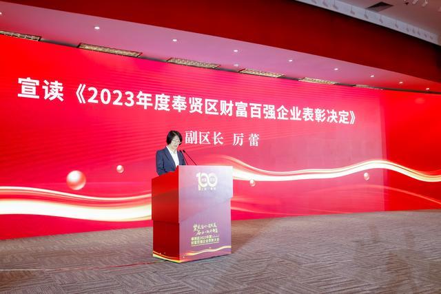 厉蕾宣读财富百强企业表彰决定。瑞庭时代、美乐家、科思创等59家纳税亿元以上企业上台领奖。瑞庭时代、斯必克流体、辉电智能科技三家获奖企业代表作交流发言。会上,同时发布《奉贤区全面优化营商环境持续激发市场活力和社会创造力行动方案》。