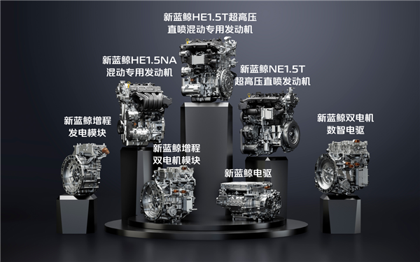 新蓝鲸发动机平台包括HE 1.5T超高压直喷混动专用发动机、HE 1.5NA混动专用发动机、NE 1.5T超高压直喷发动机三种,对应不同定位产品。