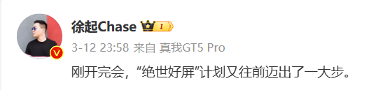此外,真我 realme 副总裁、全球营销总裁、中国区总裁此前也发布微博,透露了一块“绝世好屏”的消息,结合新品预热信息来看,应该也是在暗示这款新机将会搭载一块不错的屏幕,结合优秀的性能,或许会带来更多配置上的惊喜。
