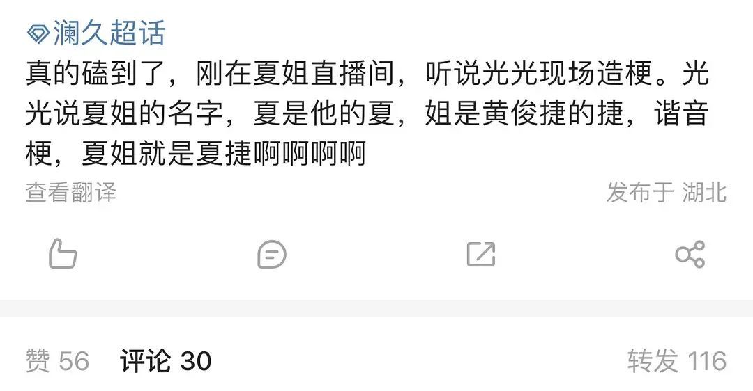 夏之光在直播间,现场为“澜久”造梗。夏之光在饰演夏姐的演员俞俙的直播间,公然为粉丝现场造梗:夏之光的“夏”,黄俊捷的“捷”(谐音“姐”),“夏姐”=“夏捷”。这很难不嗑吧?
