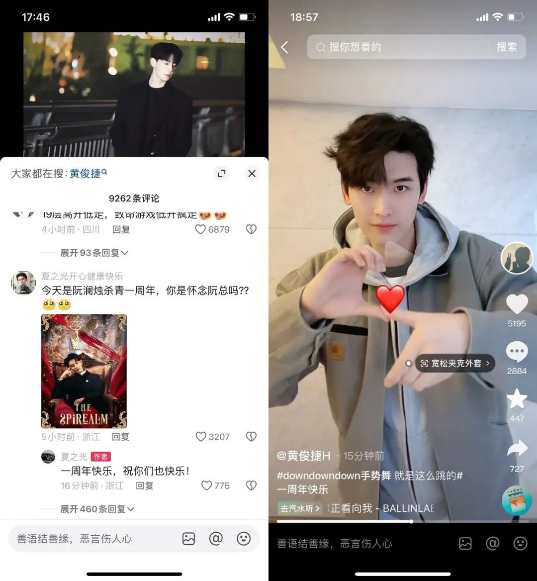 只要涉及黄俊捷或《致命游戏》,夏之光立刻发声。3月3日,是《致命游戏》杀青一周年的日子。夏之光发布《致命游戏》相关视频,暗暗怀念剧组时光和阮澜烛,近万条评论,他仅仅回复了一周年的评论。随后,黄俊捷也发手势舞视频回应。