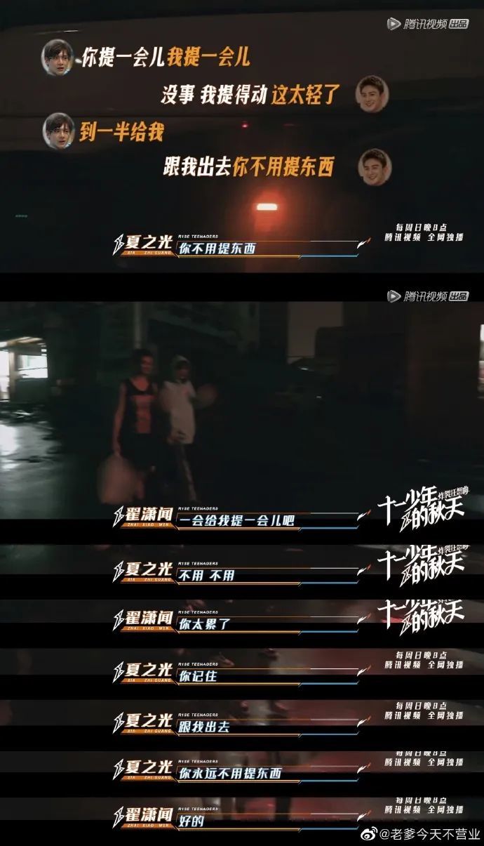 “你记住,跟我出去,你不用提东西”。团综夏之光、翟潇闻一起出去买东西,翟潇闻表示东西太重,可以轮换着提,夏之光:“你记住,跟我出去,你不用提东西”,这是什么男朋友发言,是超粗的双箭头爱吧,这还不嗑什么时候嗑?