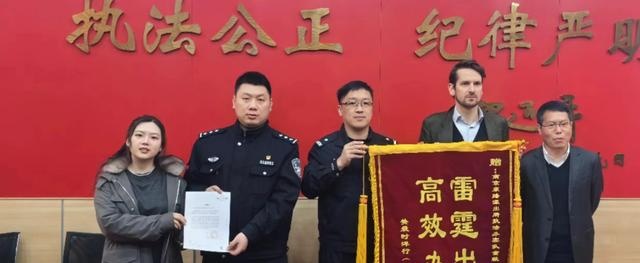 在上海市公安局黄浦分局南京东路派出所的大堂,市民雷女士激动地将手中的锦旗赠予了民警,自己公司在境外被诈骗的69万多元能及时止付,对雷女士来说是一件意想不到的事。