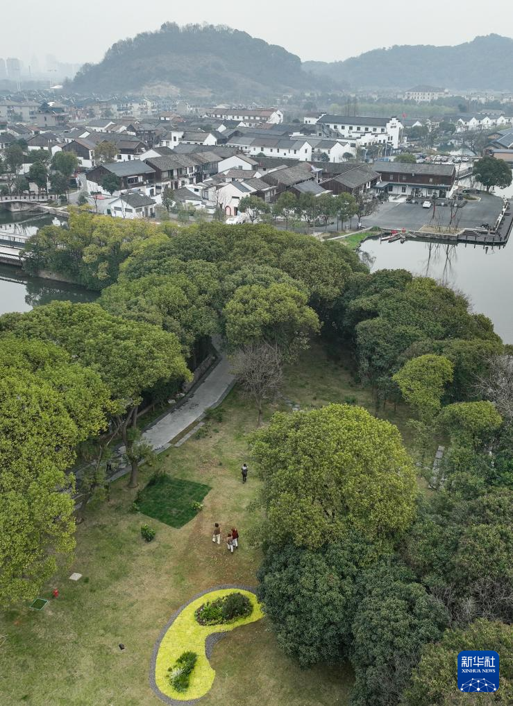 3月15日,游客在叶家堰居一片绿地上游玩(无人机照片)。