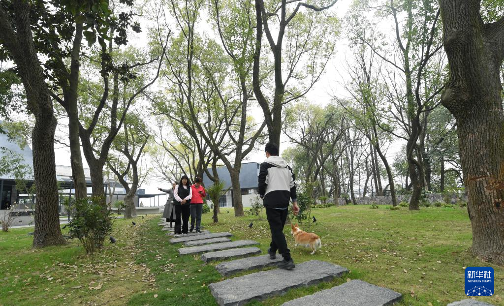 3月15日,游客在由自来水厂改造的先锋鉴湖书店附近行走。