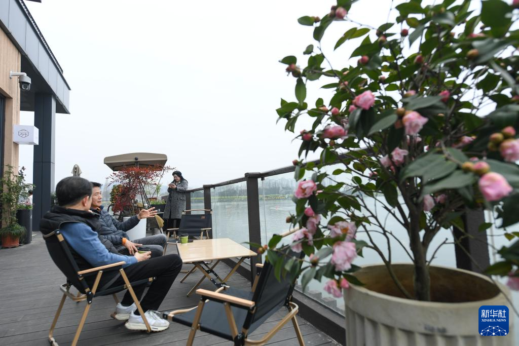3月15日,游客在叶家堰居一家咖啡馆休闲。