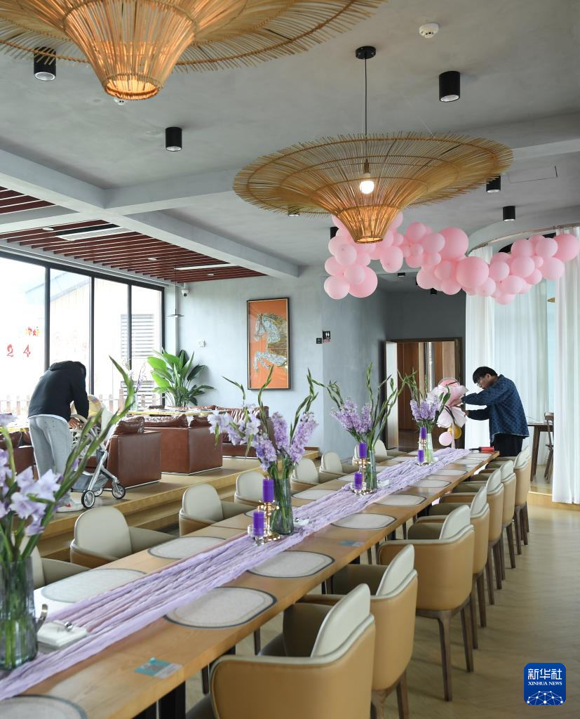 3月15日,一家乡村餐厅的工作人员在准备一场预定的生日宴。
