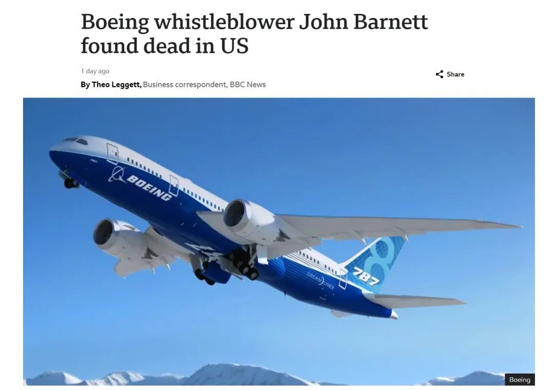 当下,波音的最大麻烦不是飞行故障,而是一位波音“吹哨人”突然死亡。