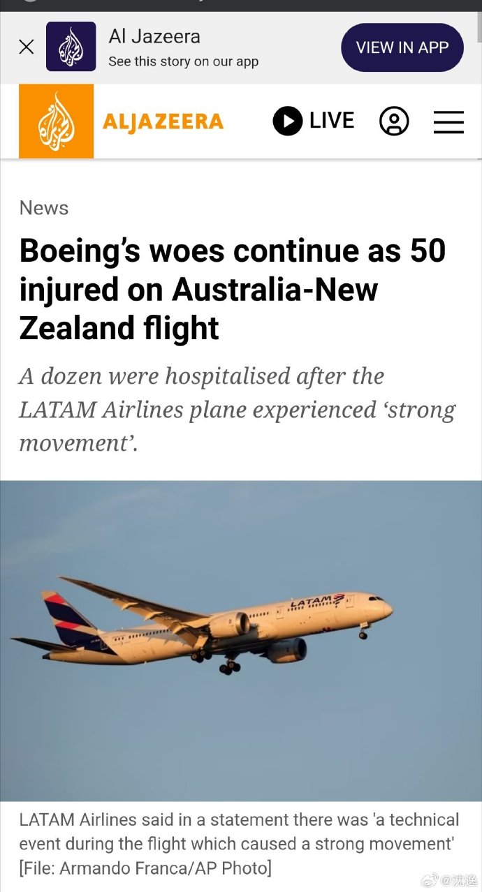 一部揭发波音生产乱象的调查纪录片《破碎的梦想:波音787》又被网友翻出来。它是2015年由半岛电视台拍摄的,讲述了波音-787客机投入使用以来严重安全问题的调查故事。半岛记者利用要员采访、幕后调查等手段,揭露了波音公司在787客机设计、生产过程中的种种问题。