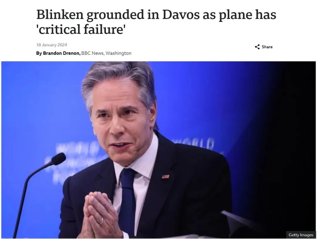 美国国务卿布林肯专机的“氧气故障”事件之后,连美国都不信任波音了。