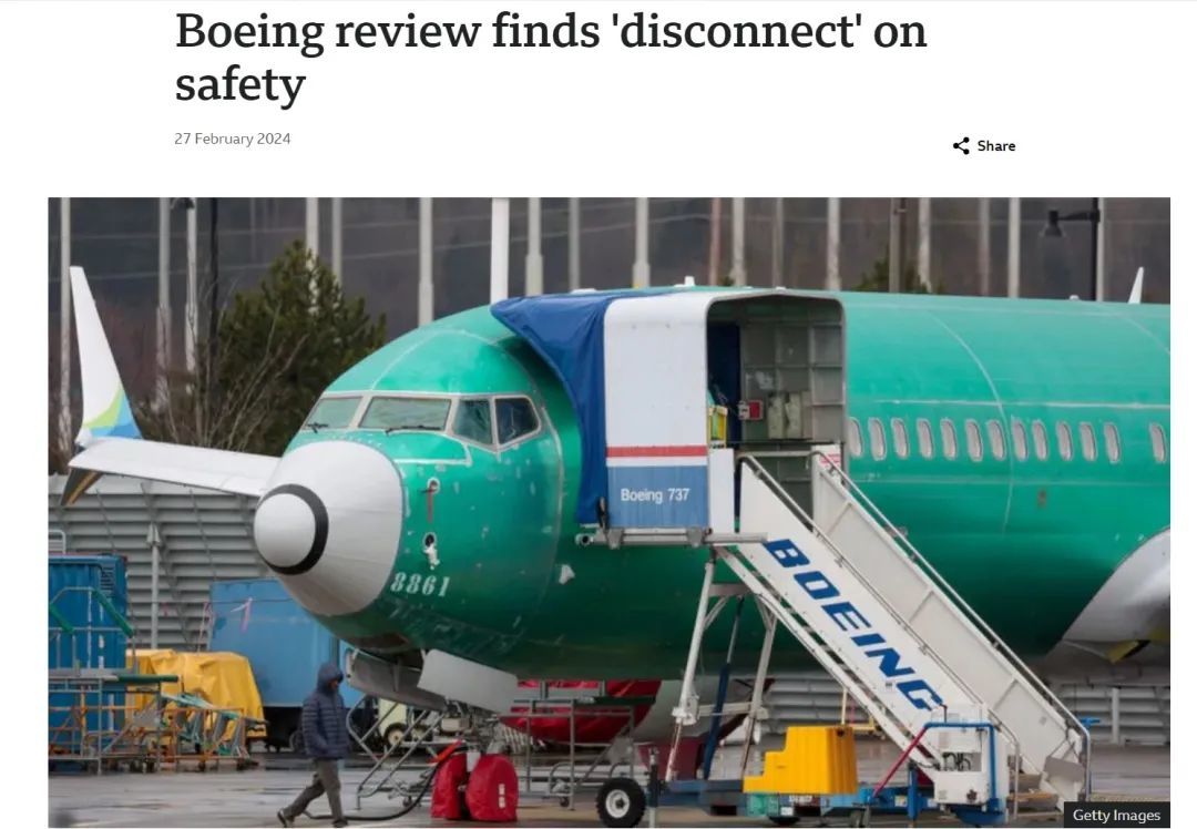 2024年2月27日,FAA公开了对波音为期六周的审查结果。