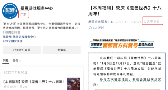 看到这里,有些玩家是不是感觉国服回归又“稳了”、“定了”?其实在小编看来这只是暧昧的小动作罢了,去年年底就有玩家发现暴雪游戏服务中心公众号IP属地变更为广东(现在也还是广东),而之前的发文IP属地皆为上海。国服玩家对这个公众号应该都很熟悉,国服运营期间的账号安全支持、停服后游戏退款都是在这个公众号上进行的。