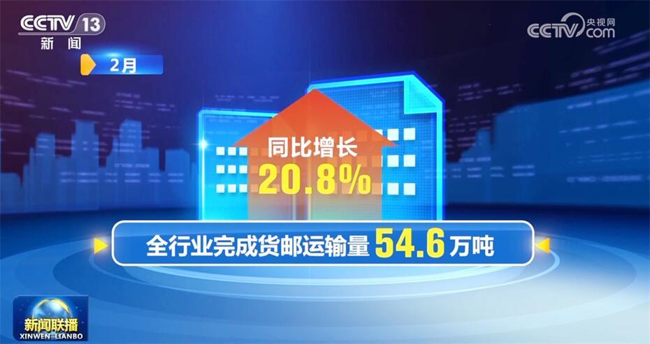 货运方面,2月,全行业完成货邮运输量54.6万吨,同比增长20.8%。其中,国内、国际货运规模同比分别增长20.5%、21.3%。1—2月货邮运输量达到历年开年前两月最高值。