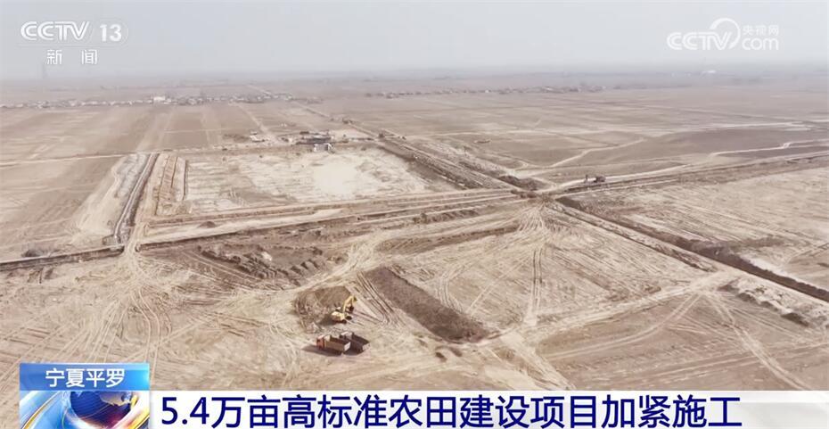 在宁夏平罗县高标准农田的施工现场,机械轰鸣,目前5.4万亩高标准农田建设项目已完成70%以上。