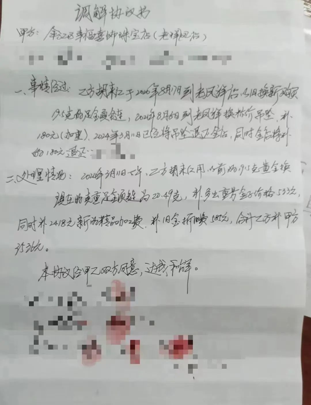 胡女士的女儿:你们只说了不要工费,那老人家肯定不知道你的套路,不知道克重会相差这么多。