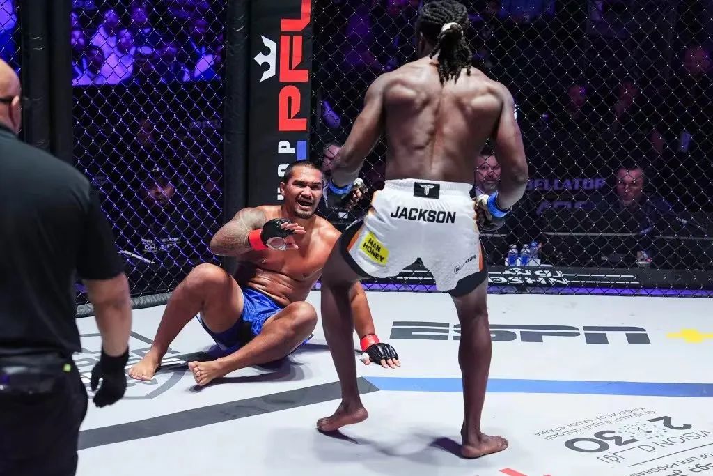 就在前段时间进行的世界两大顶级赛事PFL和Bellator的冠军对抗战中,Bellator次中量级现任冠军杰森-杰克逊便再次展现了“卡夫踢”的巨大破坏力。