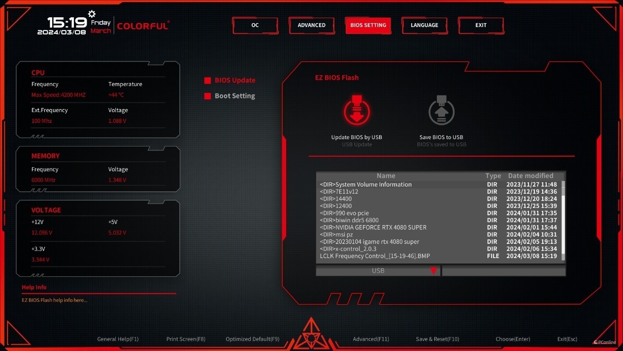 并且这次主板还内置了BIOS升级功能,切换至BIOS选项卡后,用户可以使用U盘快速更新BIOS版本,相比以前更加人性化了。