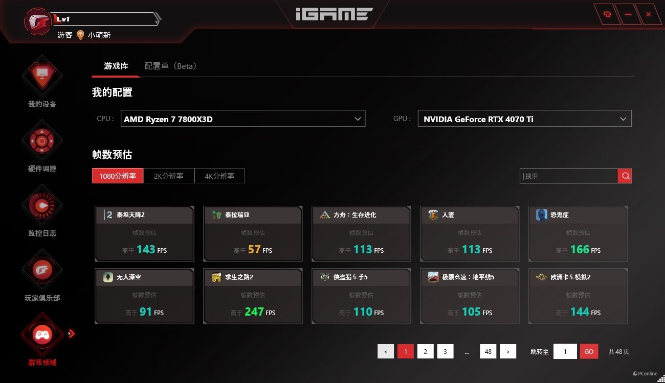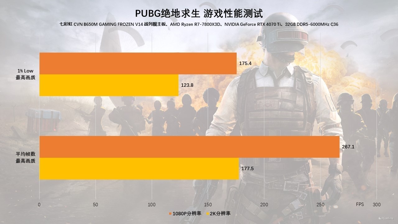 接着是玩家心心念念的游戏测试,我们选取了几款热门游戏进行测试,分别测试了1080P与2K画质,均为最高画质,不开启DLSS,看看7800X3D的实力如何。