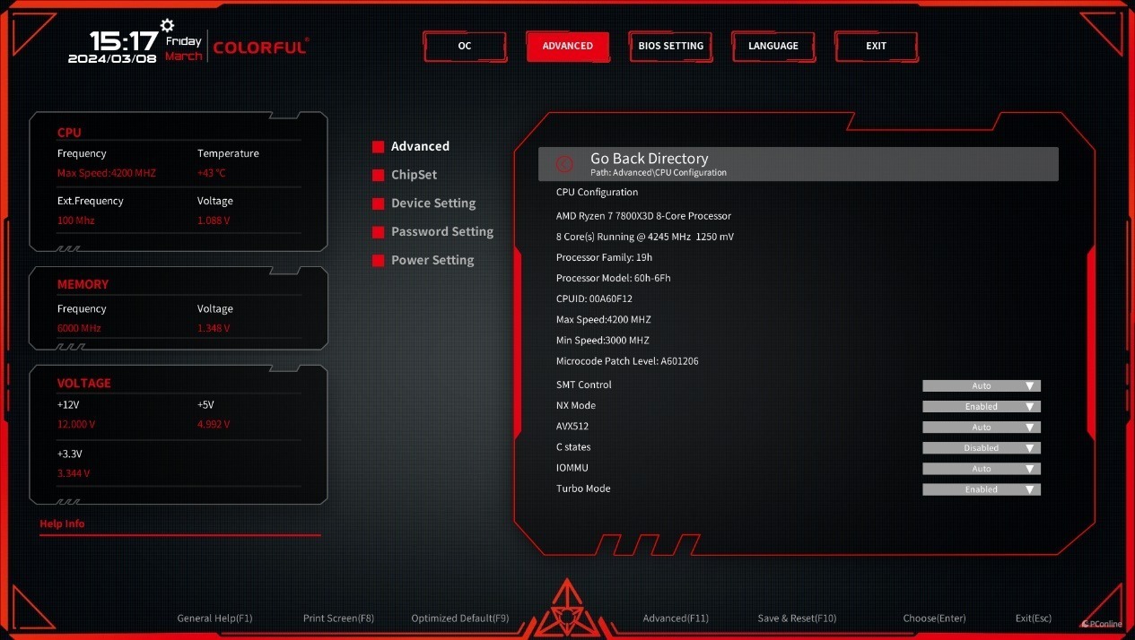 虽然这是一块B650主板,超频部分的设置还是相当丰富的,即便你是极客玩家,也能有不错的体验。这里我们也是直接开启了自动PBO,让手上的7800X3D可以冲击更高的频率。