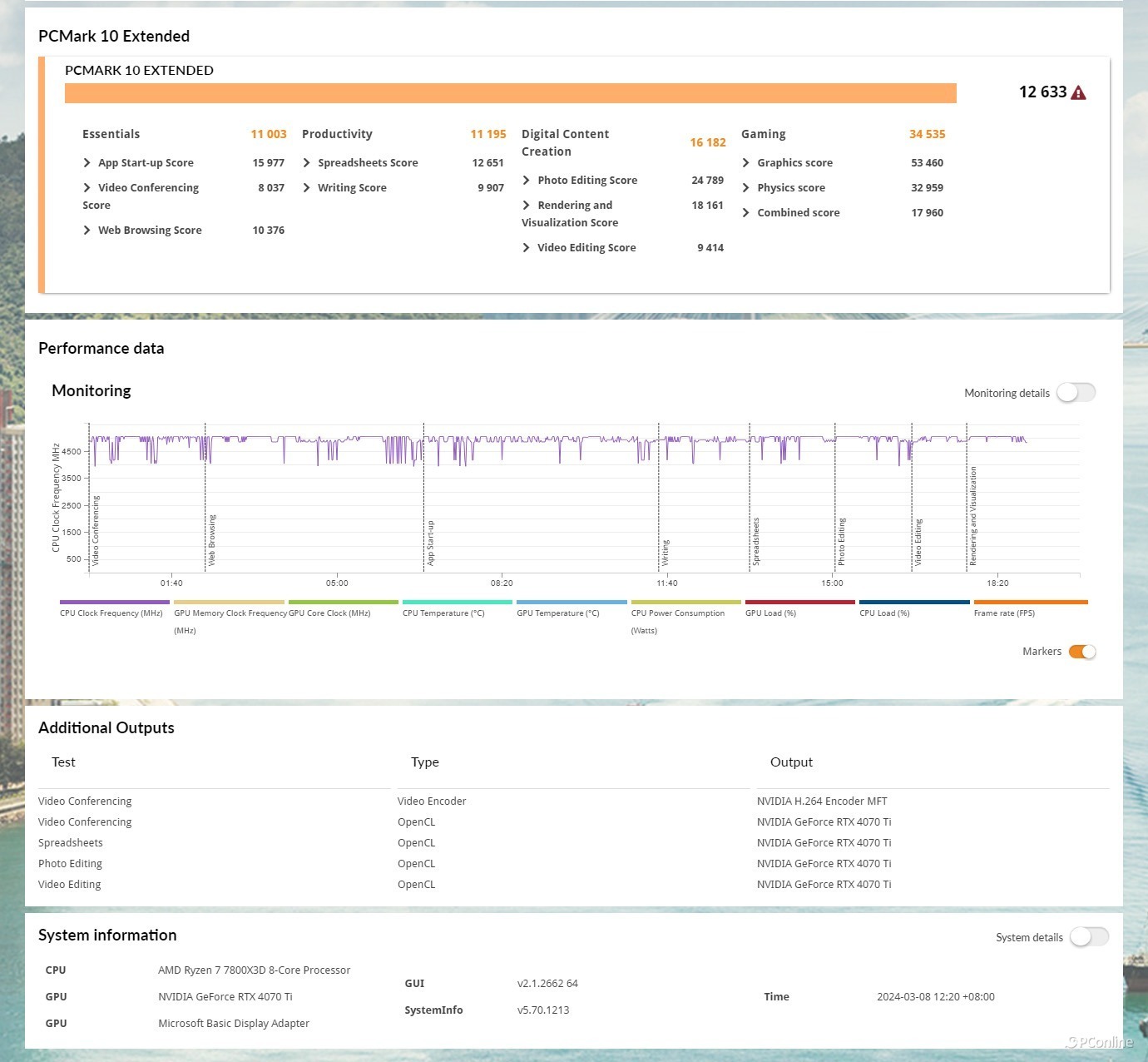 日常使用体验使用PCMark 10 Extended项目来进行测试。项目包括常用基本功能、生产力、数位内容创作,以及游戏测试部分,从而全面地评价这套平台的使用体验。