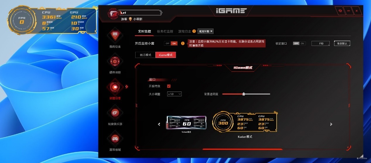 如果你是游戏党,你还可以打开系统检测及游戏帧数OSD功能,对自己的硬件有更详细的认知。