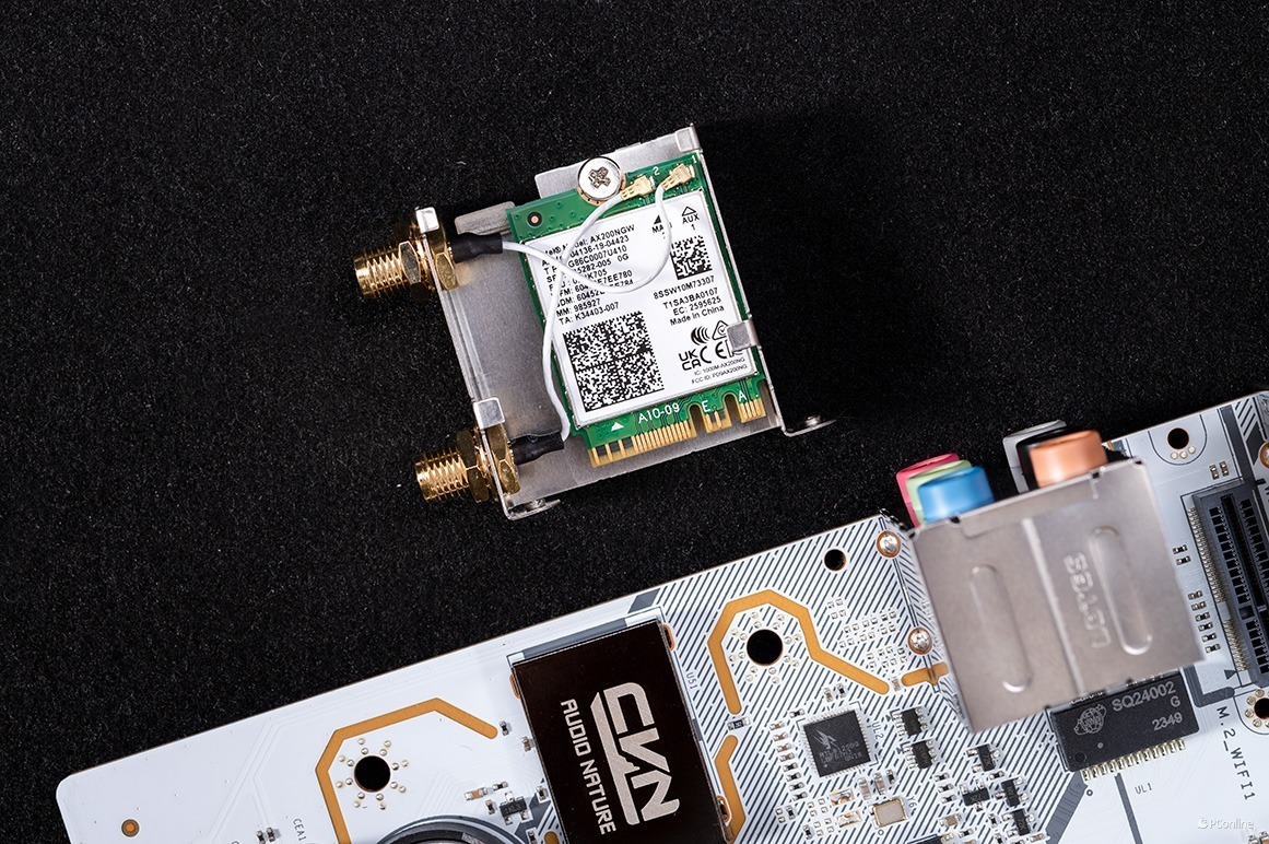 在网络方面主板预装了Intel的Wi-Fi 6芯片组,型号是AX200无线网卡,支持WiFi-6,同时集成了蓝牙5.2。有线网络方面则使用Realtek RTL8125B网卡,带宽是此前千兆网卡的2.5倍。