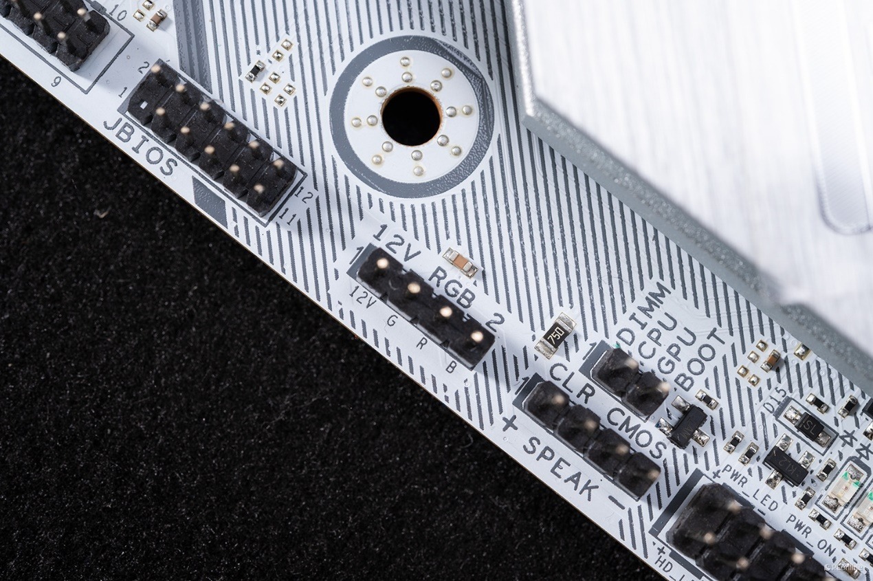 主板底部还有2个5V3-pin和2个12V4-pin的ARGB插针可以操控,配合七彩虹的控制软件还可实现多硬件的灯效同步。