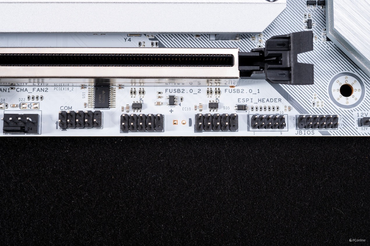 另外,两根PCIe x 16插槽均有合金强化,能够有效防止插槽变形,显然各大主板厂商也见识到了RTX 40系显卡惊人的厚度和重量。