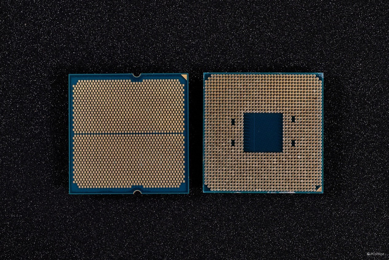 这块主板最大的不同就是,AMD首次采用新设计的Soket AM5接口,PGA针脚接口转到LGA触点式接口上,两者的Package大小同样是40mm*40mm。