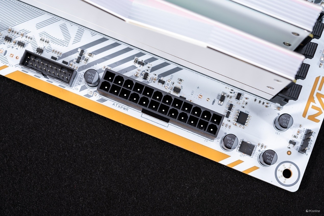 CPU的供电接口为8+4Pin,主板的右侧依旧是24Pin供电接口,是硬件能够稳定运转的重要保障之一。